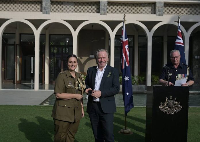Australia’s High Commissioner to India, Philip Green, presented honours to serving personnel during the event. Army attaché Lt Col Fiona Bruce was awarded the Defence Long Service Medal in recognition of her dedicated service.