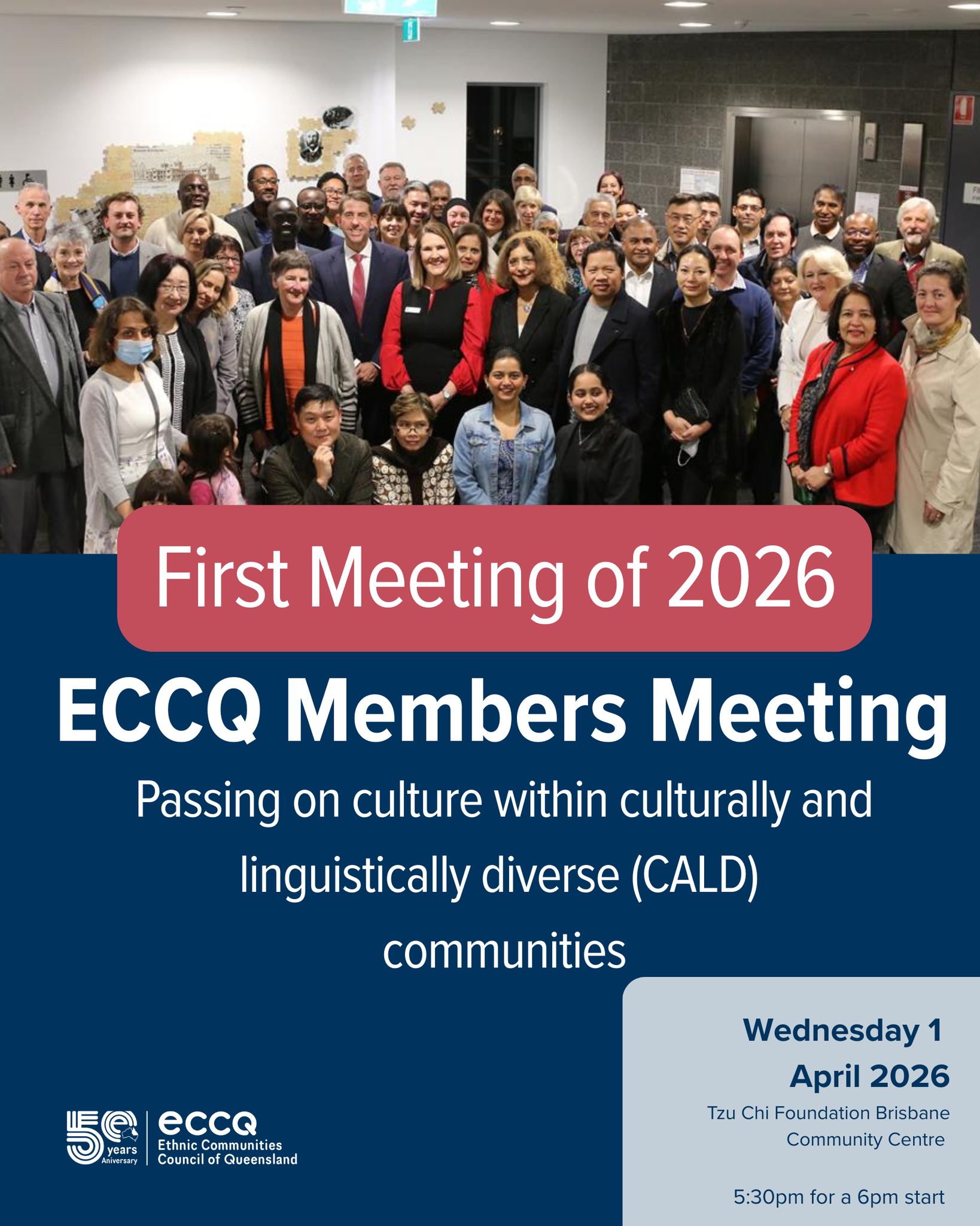 The Ethnic Communities Council of Queensland (ECCQ) will hold its first members’ meeting of 2026 on April 1 at the Tzu Chi Foundation Brisbane Community Centre, focusing on the theme of passing on culture within culturally and linguistically diverse (CALD) communities.
