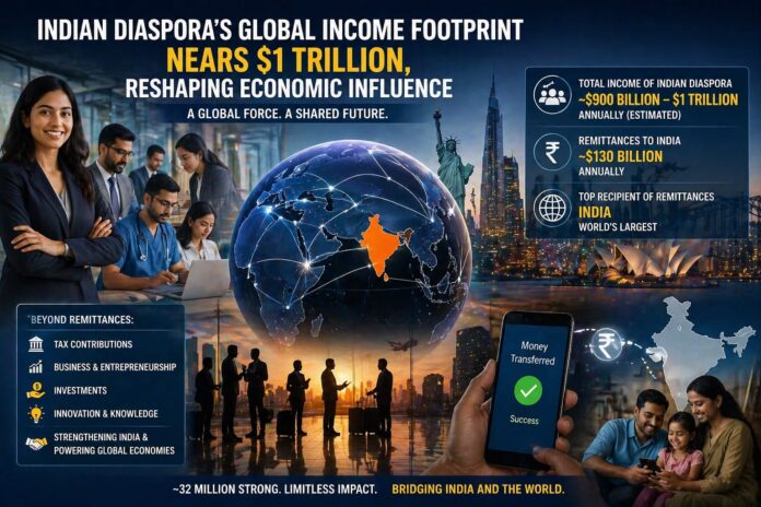The global Indian diaspora is emerging as one of the most economically influential communities in the world, with its total income estimated to be approaching the $1 trillion mark annually, according to recent analysis published by The Australia Today.