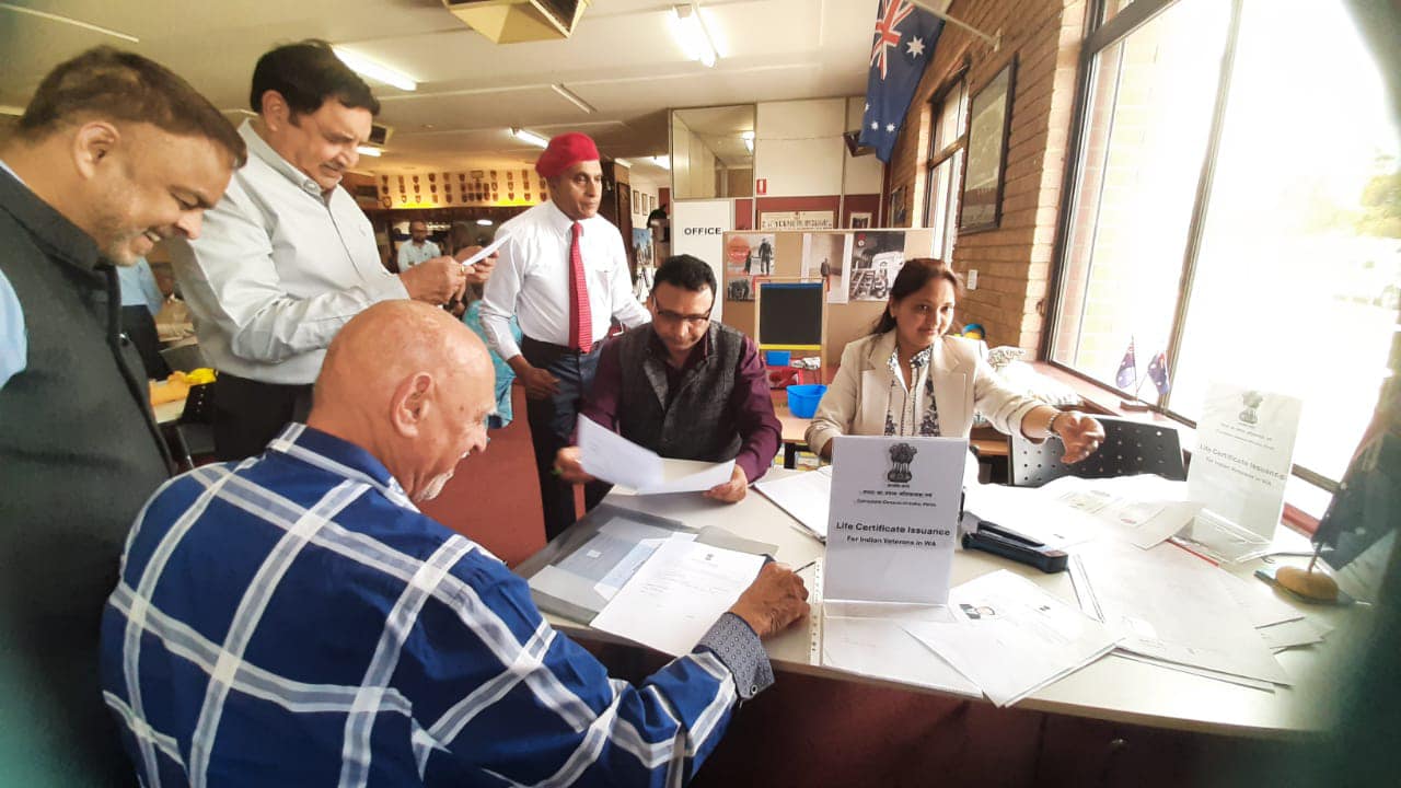 The Consulate held a special consular camp at the RSL Club in Belmont, recently. At the camp life certificates were issued to veterans of the Indian defence forces residing in Western Australia. In a heartfelt celebration of the Indian veterans, the RSL sub-branch proudly hoisted the Indian tricolour flag at its premises.