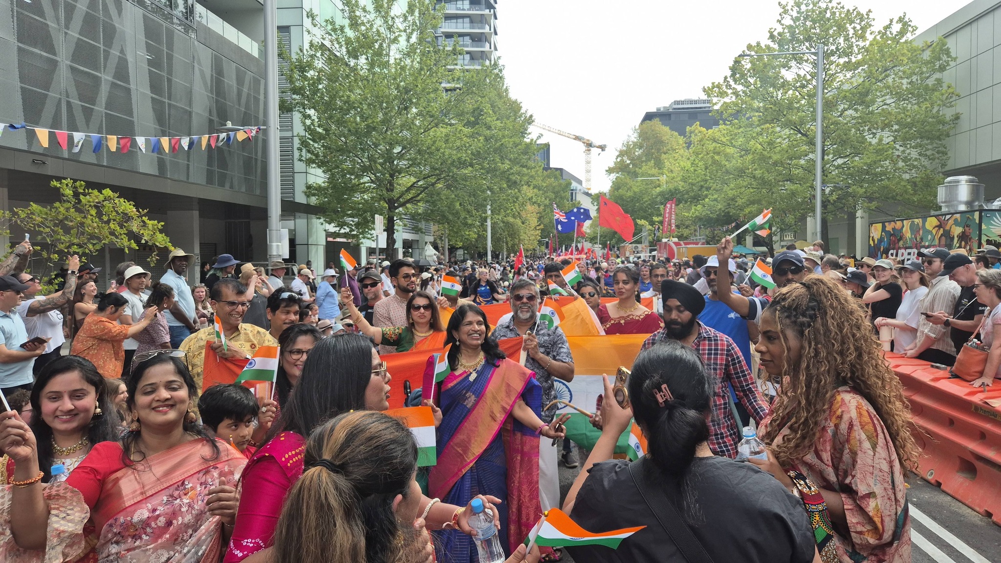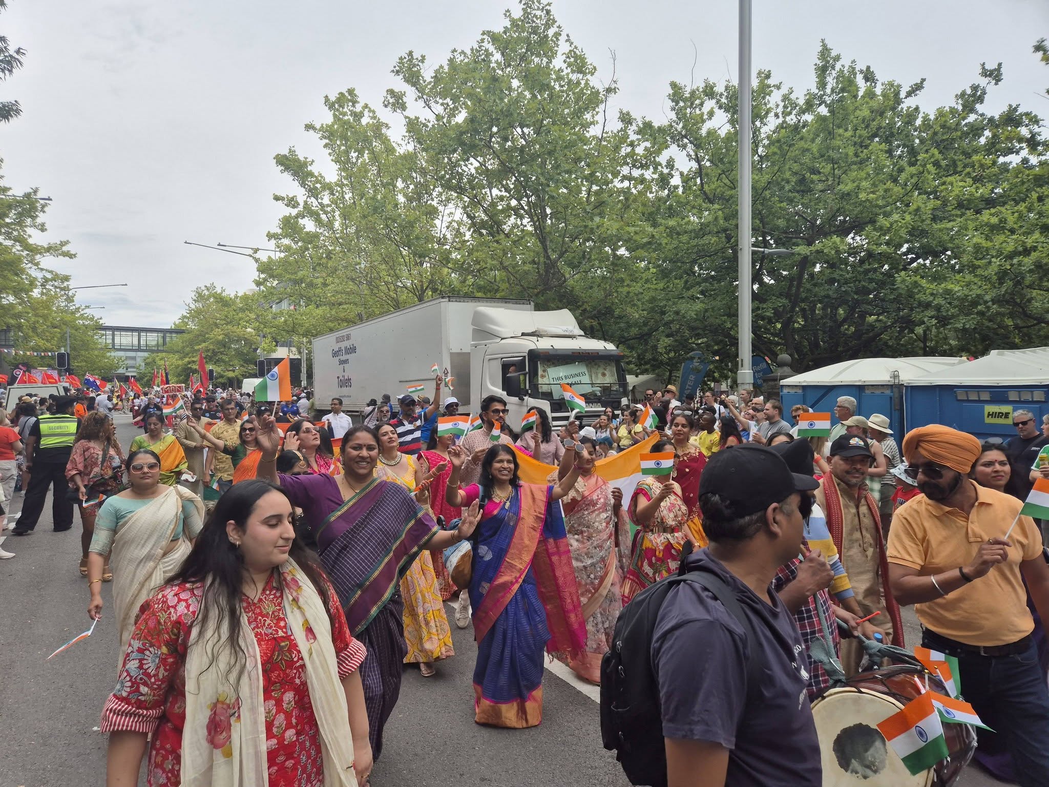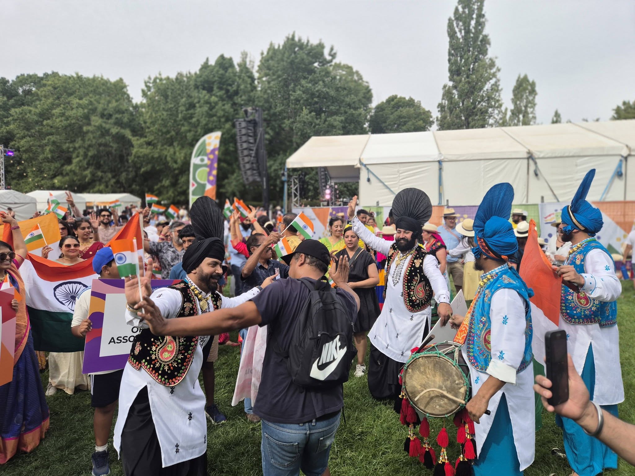 The celebrations also included a lively parade, where participants dressed in traditional attire representing various regions of India marched together under the Indian flag. The procession captured the essence of multiculturalism, with music and energetic dhol beats adding to the festive atmosphere and bringing together community members and spectators.
