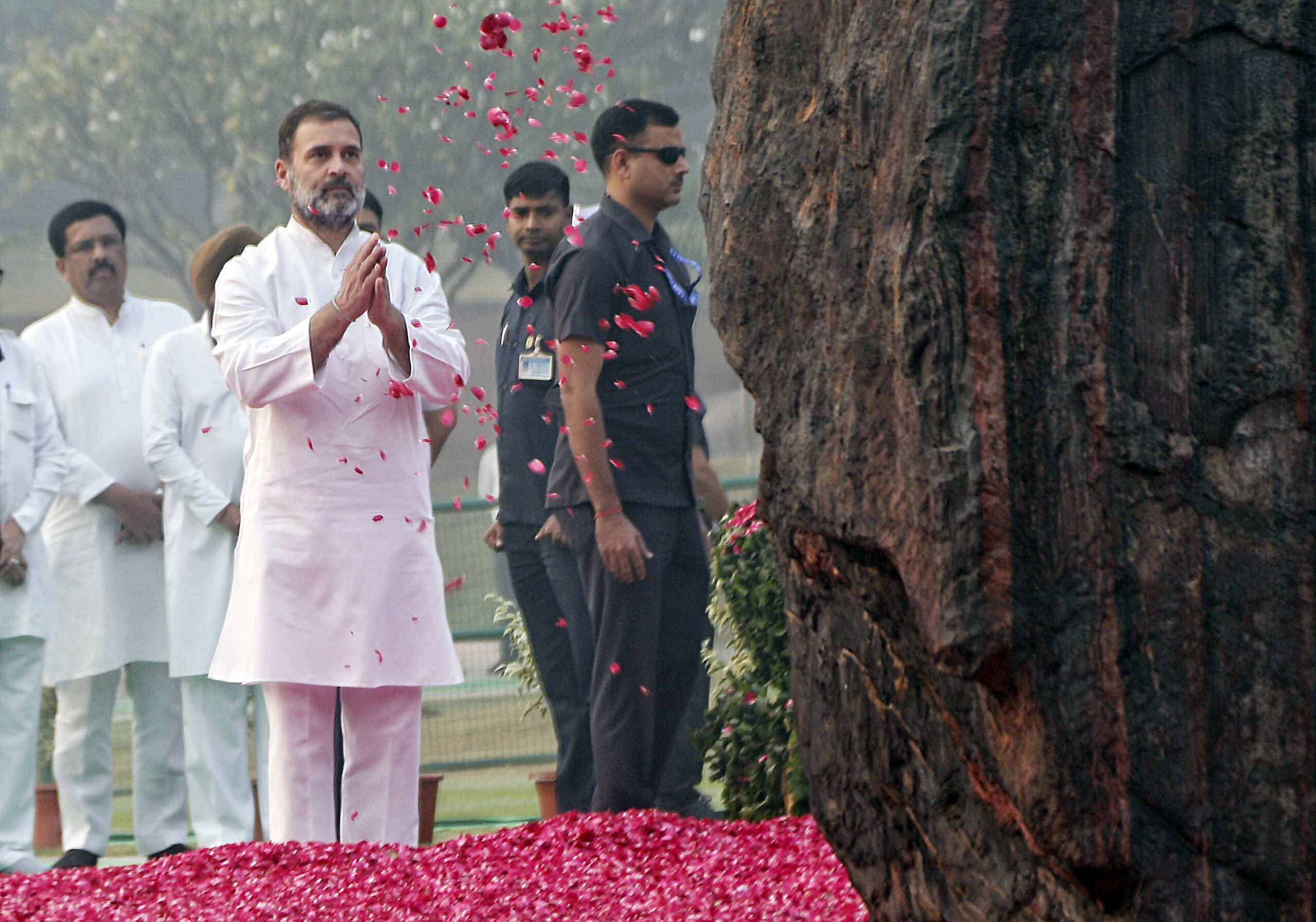 Rahul Gandhi offered floral tributes at Shakti Sthal in New Delhi, honouring the late leader’s “steadfast leadership, fearless spirit, and deep commitment to the people of India.”
