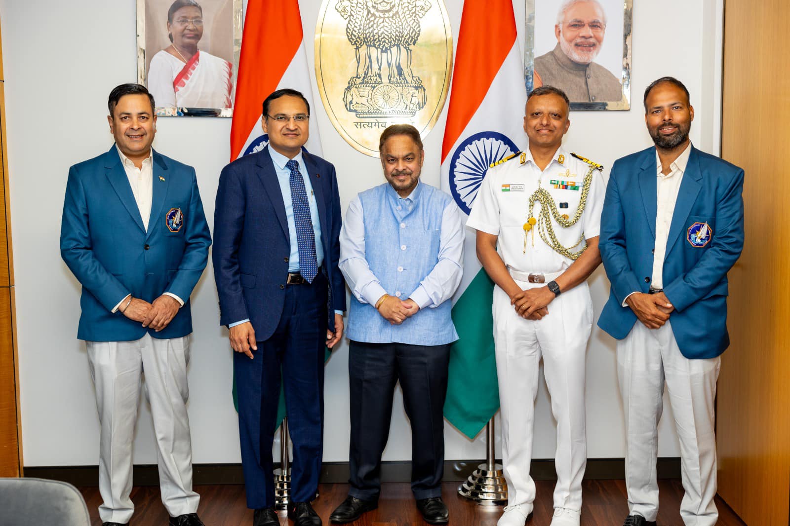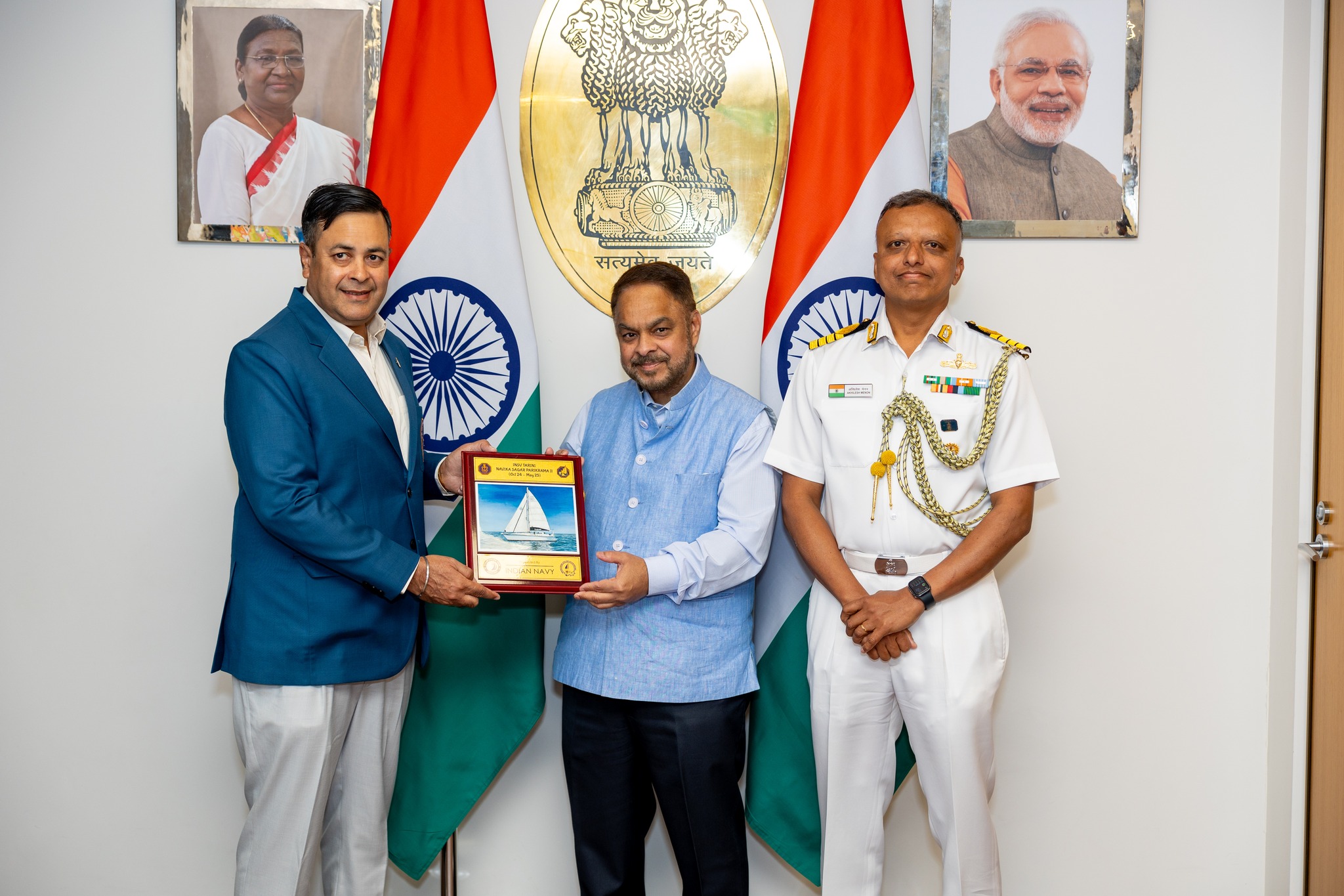 The gathering celebrated the courage and perseverance of the crew, acknowledging their extraordinary achievements in the Indian Navy’s pioneering voyage.
